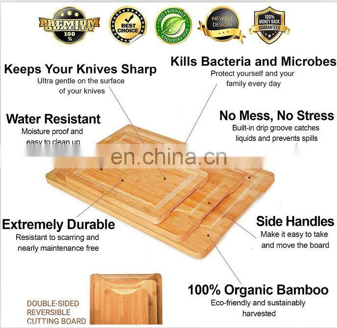 Biodegradable Eco-friendly Natural Multifunctional Vegetables Kitchen Extra Large Premium Bamboo Cutting Board Of 3 Set
