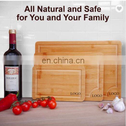 Customized 100% Organic Eco-friendly Blank Natural Bamboo 3-piece Kitchen Cutting Board Set For Large