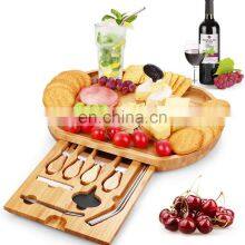Wholesale 100% Biodegradable Natural Large Tray Bamboo Cheese Board With Knives Slide Out Drawer