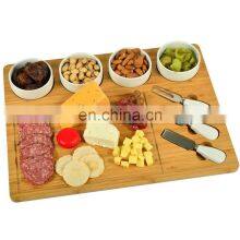 Wholesale Picnic Organic Eco-friendly Cutting Cheese Serving Board Bamboo Cheese Cutting Board Set With Ceramic Bowls