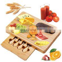 Wholesale Natural Eco Friendly Wood Bamboo Cutting Cheese Boards Slide Out Drawers With 4 Knifes Set