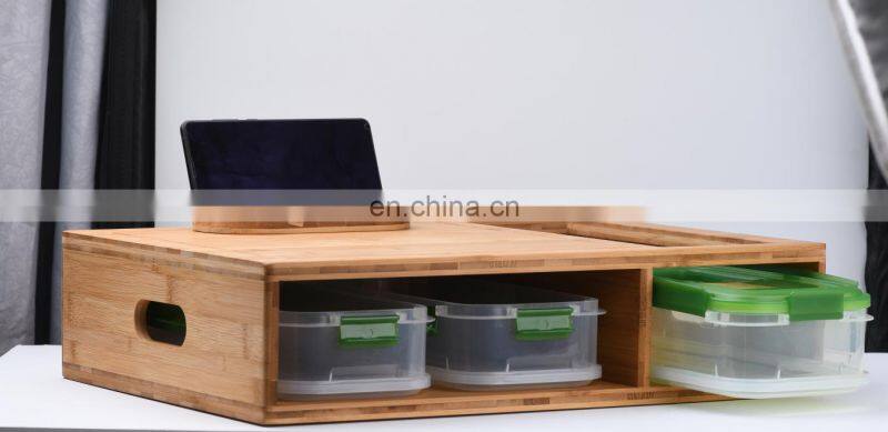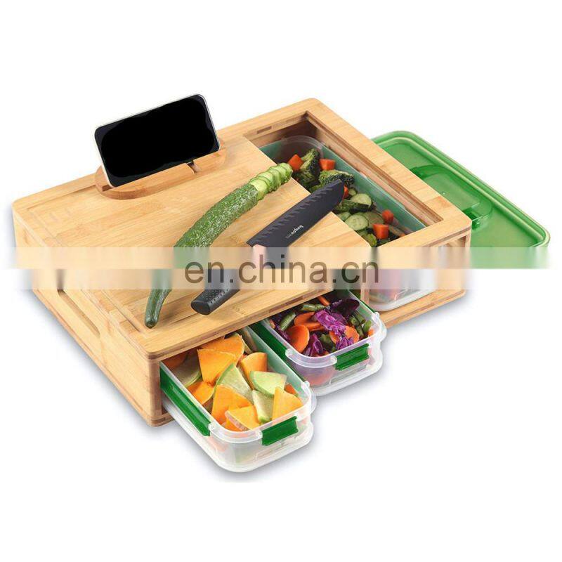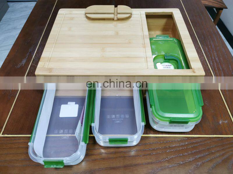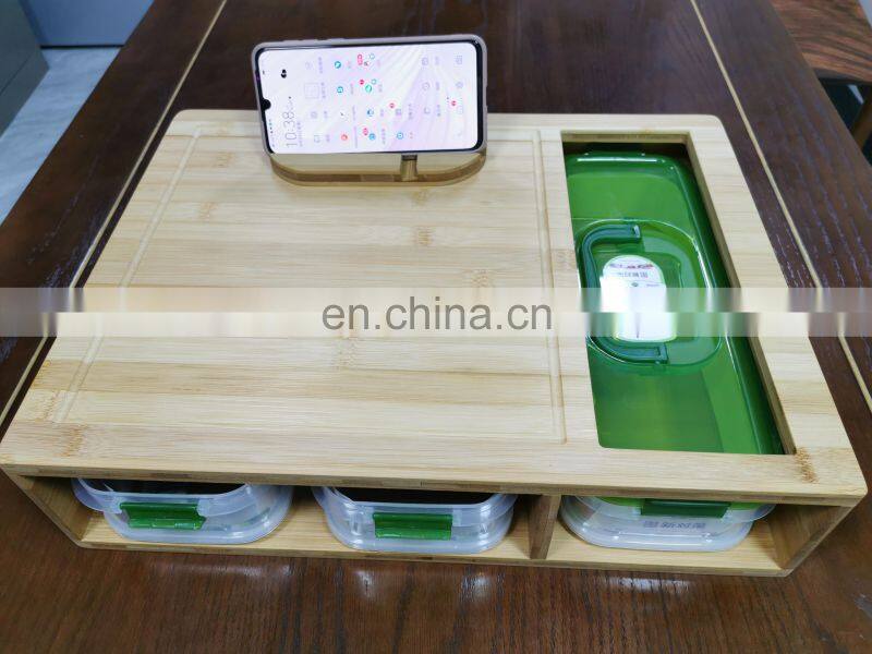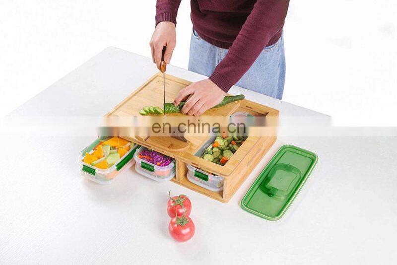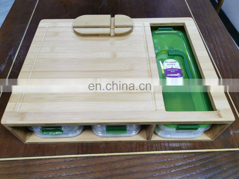 Home > Products > Chopping blocks > Multi-functional Large Bamboo Cutting Board Set Chopping Block With Juice Groove 3 Containers Kitchen & Tabletop