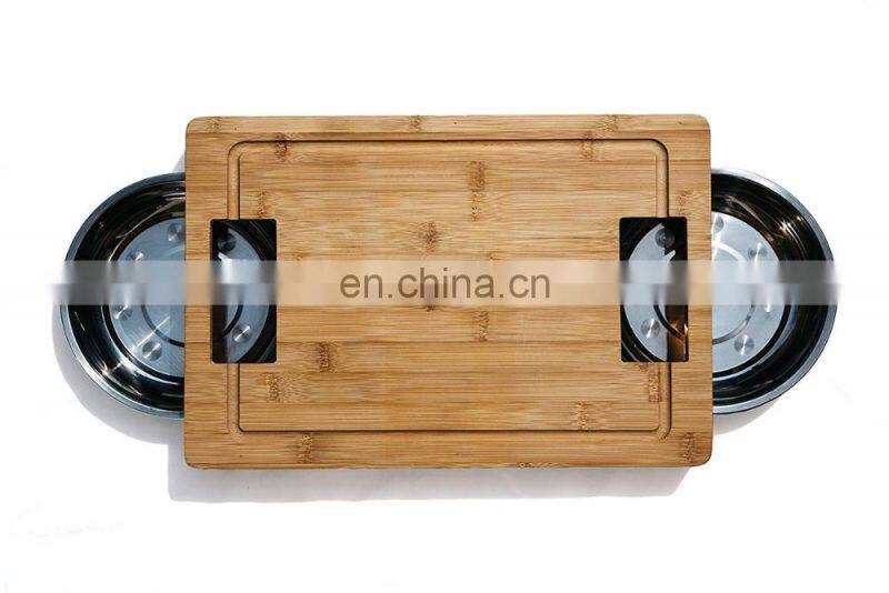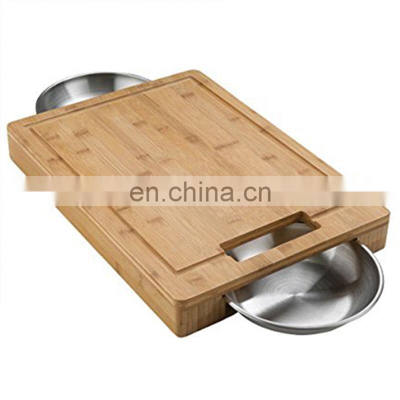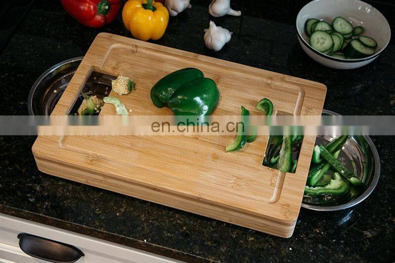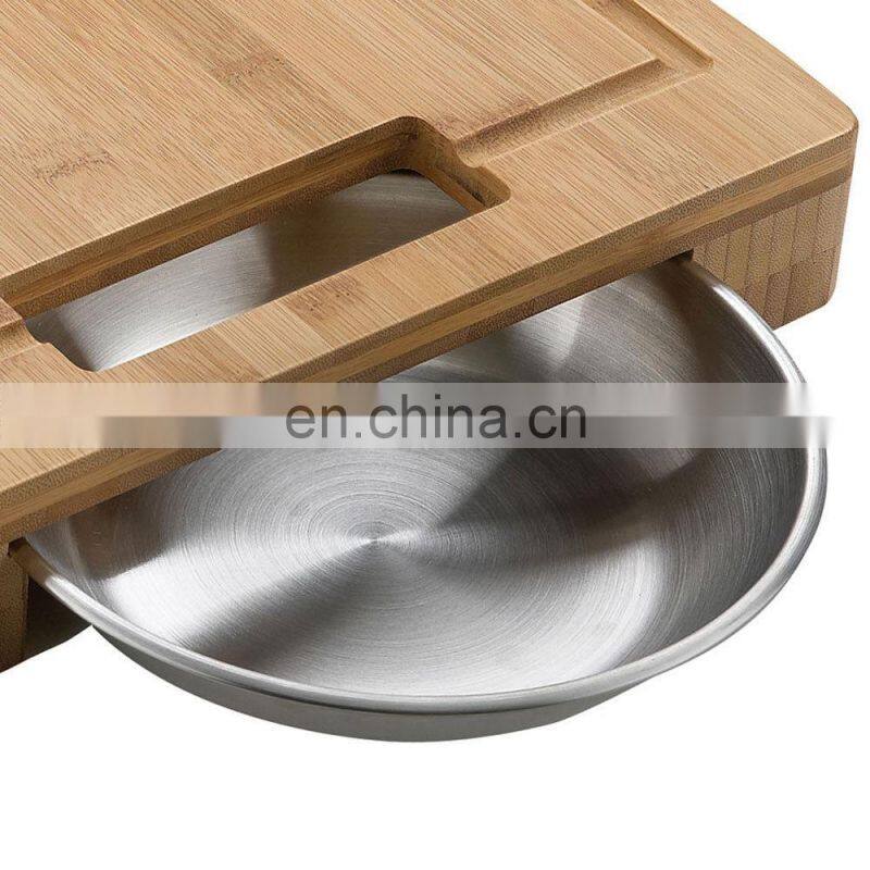 Large Wood Bamboo Chopping Board With Sliding Stainless Steel Storage Drawers for Meat, Vegetables