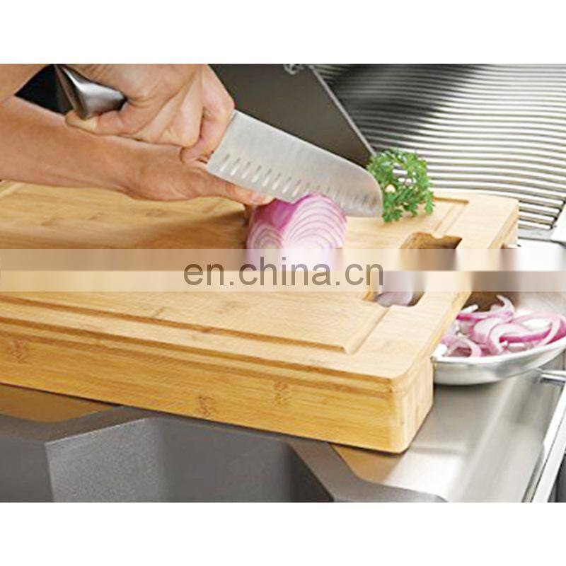 Home > Products > Chopping blocks > Large Wood Bamboo Chopping Board With Sliding Stainless Steel Storage Drawers for Meat, Vegetables