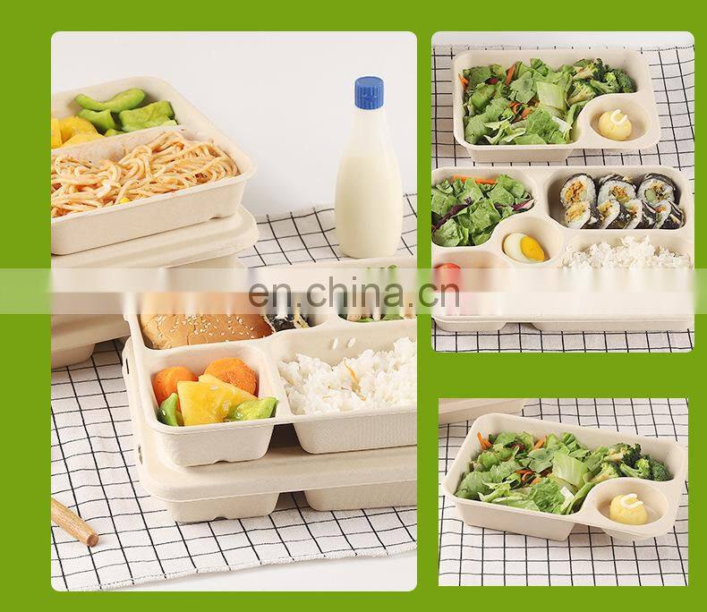 Biodegradable Eco Friendly Disposable Sugar Cane Square Boxes Hamburger Chicken Food Bagasse Lunch Box With Lid