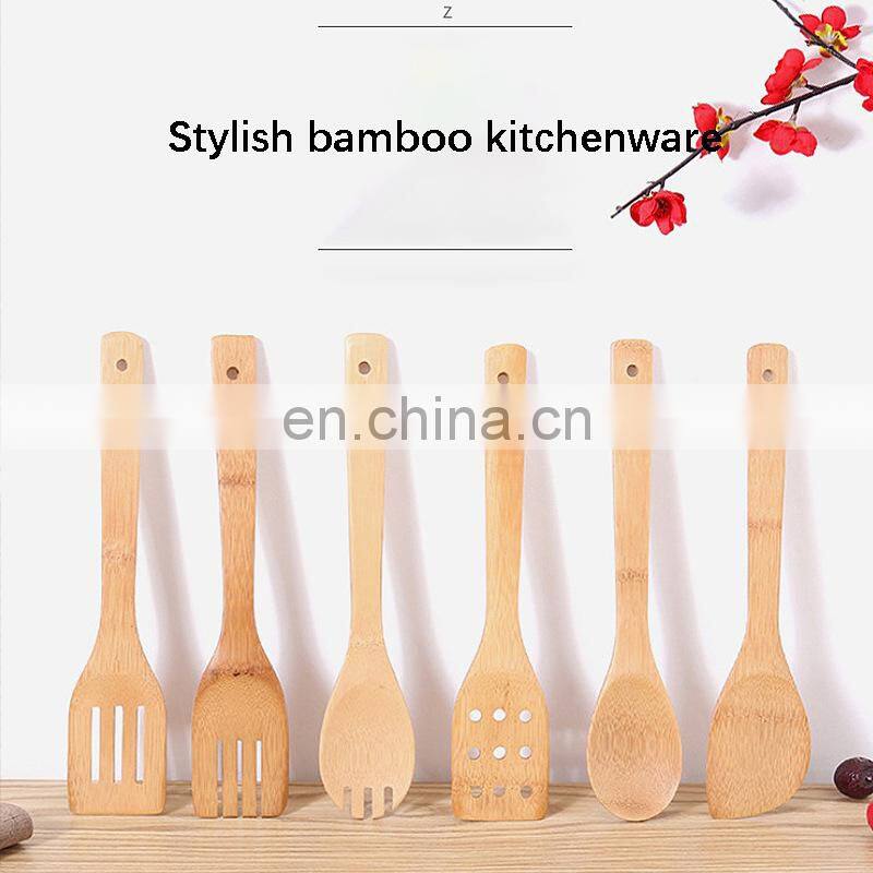 Natural Bamboo Kitchen Tools Cookware Set 6 Pcs Bamboo Wooden Spatula Utensils