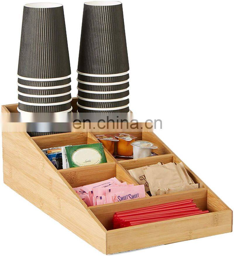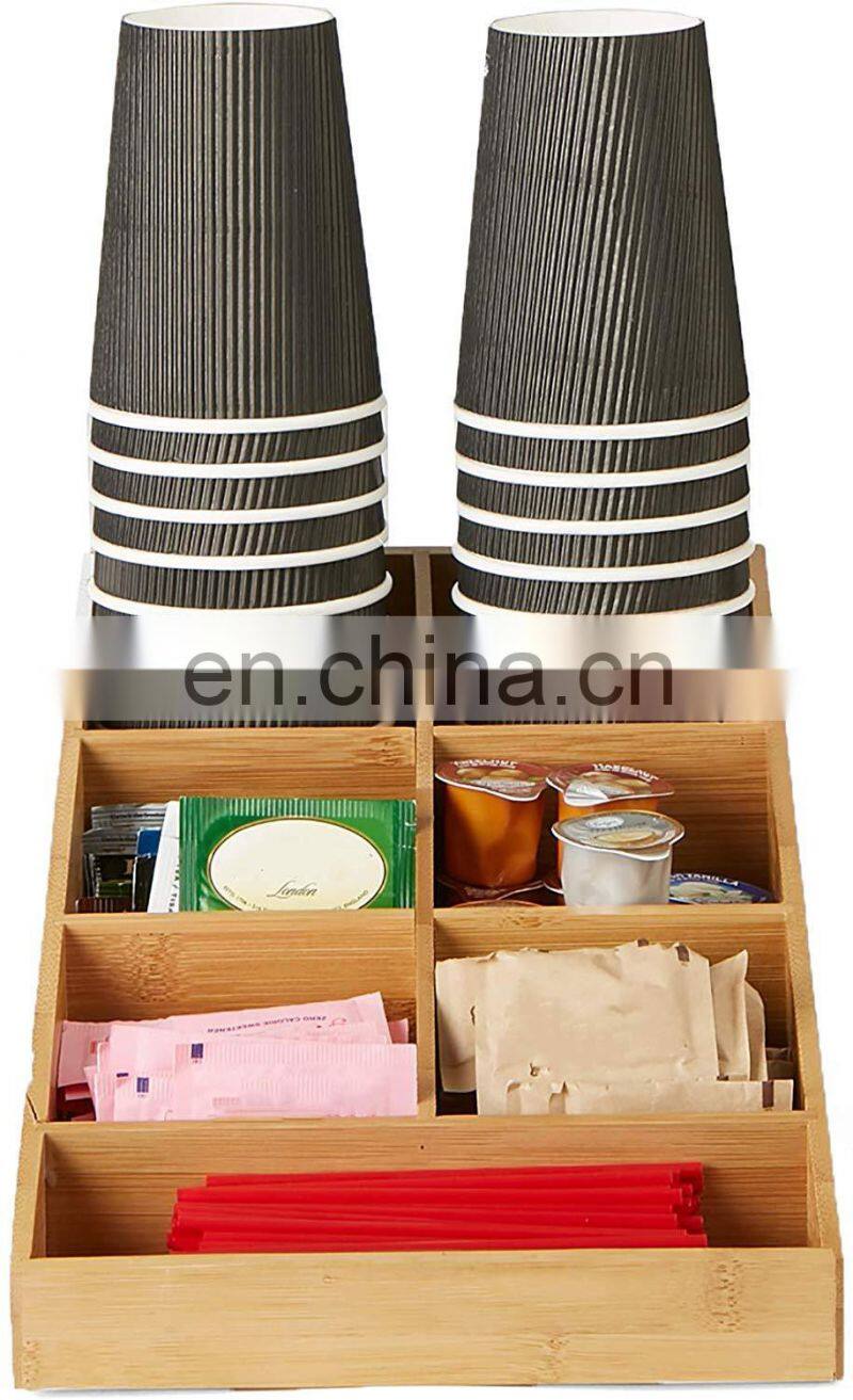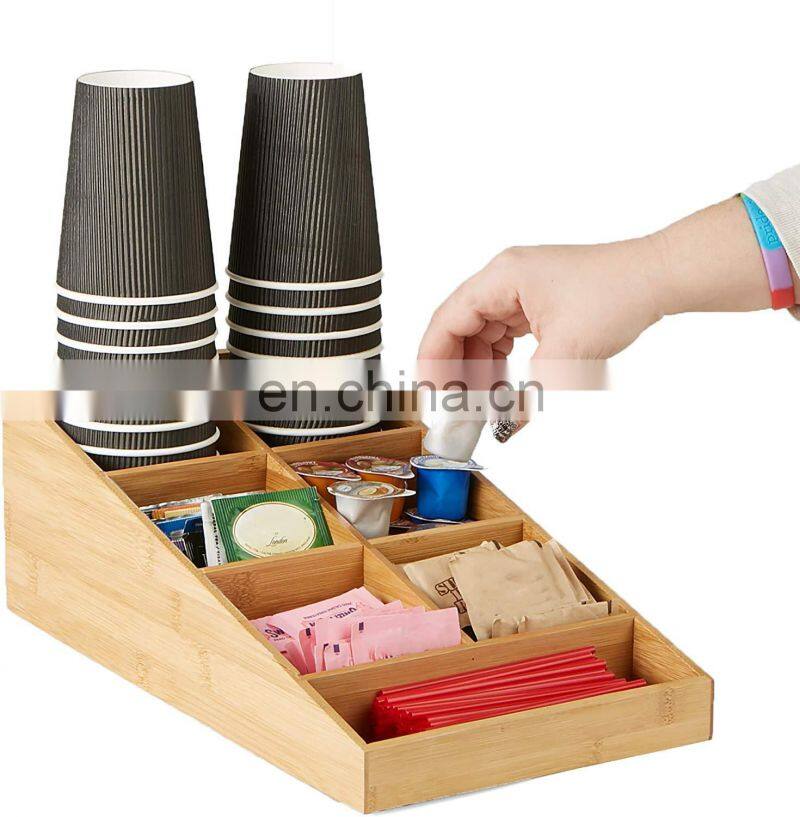 Office Kitchen Bamboo Coffee Capsule Storage Box Disposable Paper Cup With Compartments Tea Sugar Bag Storage Boxes