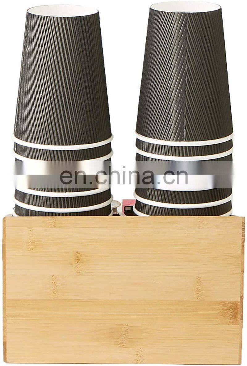 Natural Custom Bamboo Wood Disposable Paper Coffee Cup Holder Standing Rack Shelf For Coffee Shop Office Kitchen