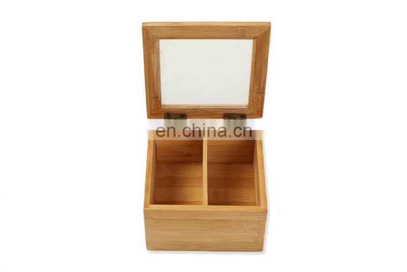 Eco Friendly Multi-purpose Living Room Premium Square Bamboo Tea Storage Box Home Storage & Organization Pantry Organizer