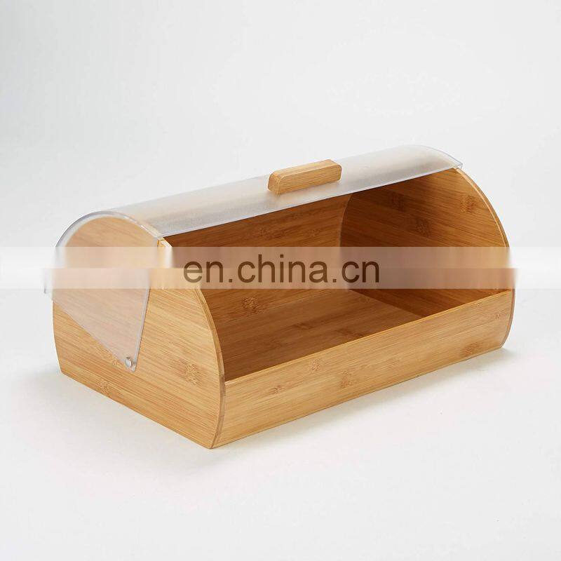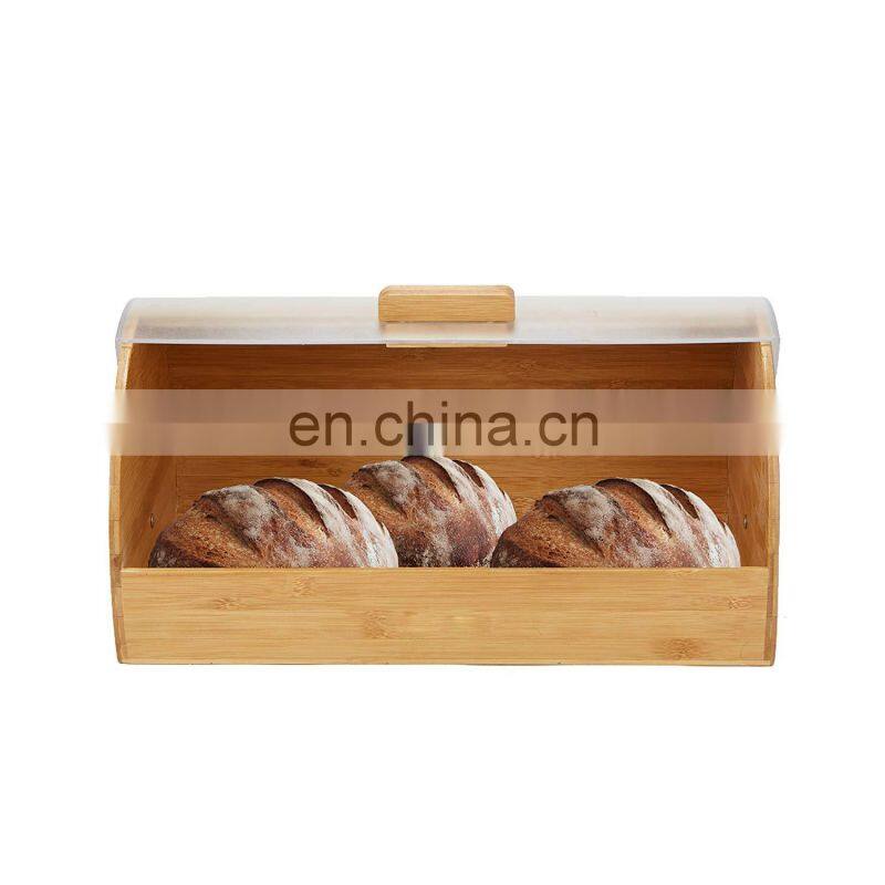 Hot Sale High Quality Simple Luxury Kitchen Bread Bamboo Storage Box With Plastic Lid