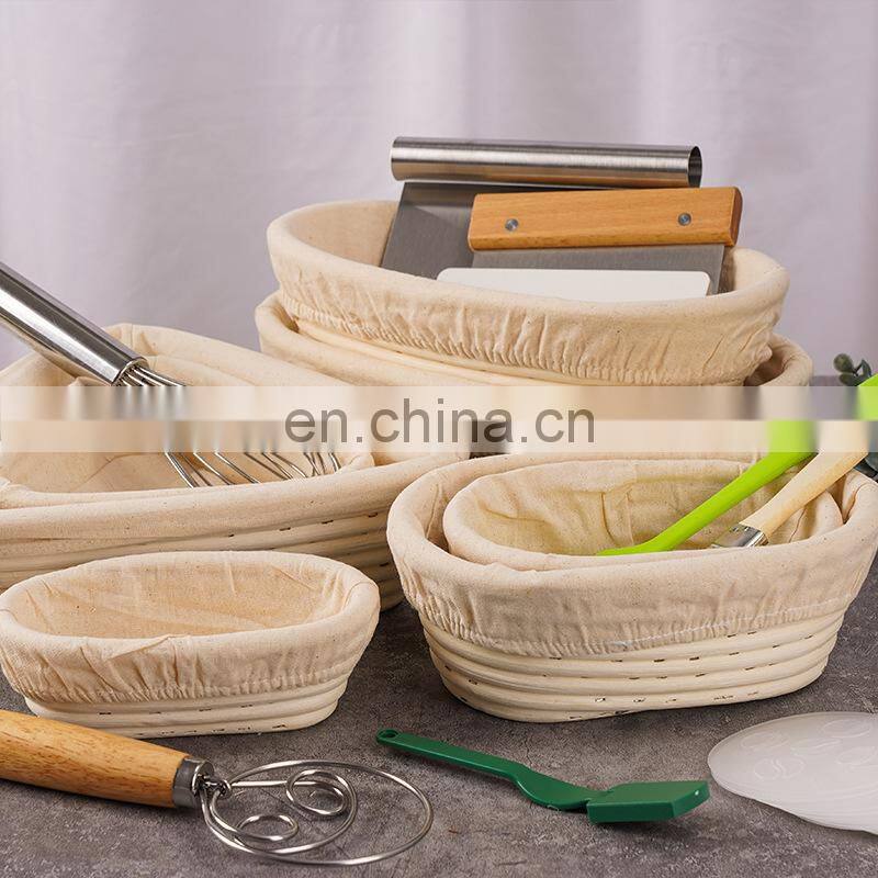 Oem Natural 9 10 Inch Round Banneton Basket Rattan Proving Sourdough Fermentation Oval Baking Bread Proofing Basket Set Cloth