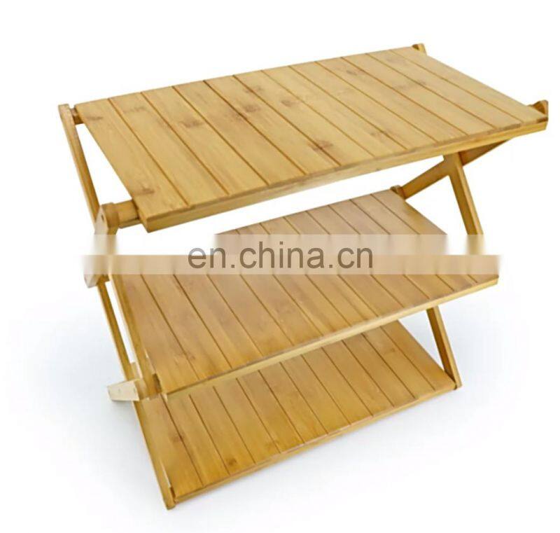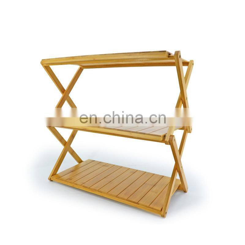 Bamboo Storage Shelf High Quality Collapsible Outdoor 3-layer Bamboo Bag Food Storage Holder & Racks