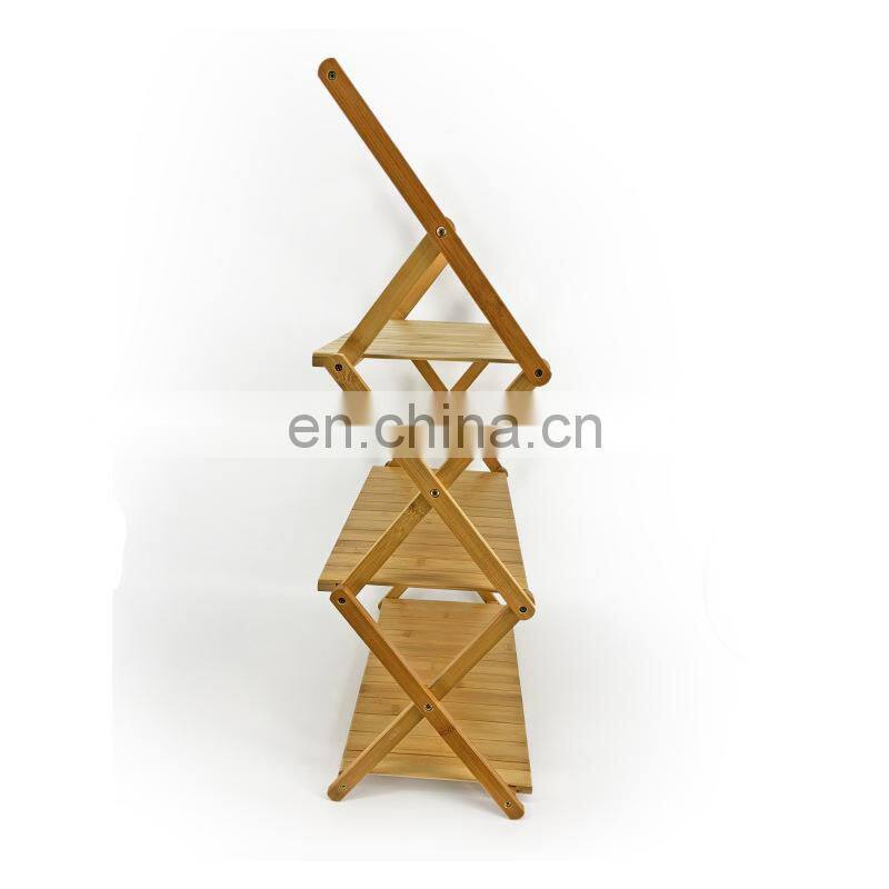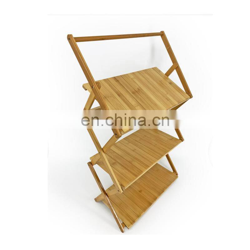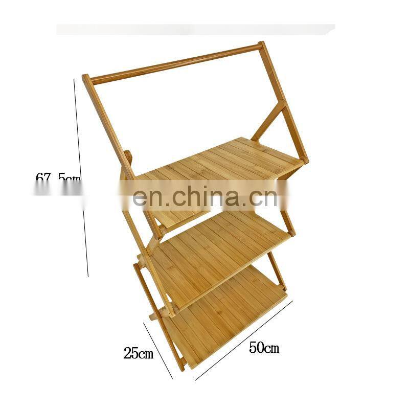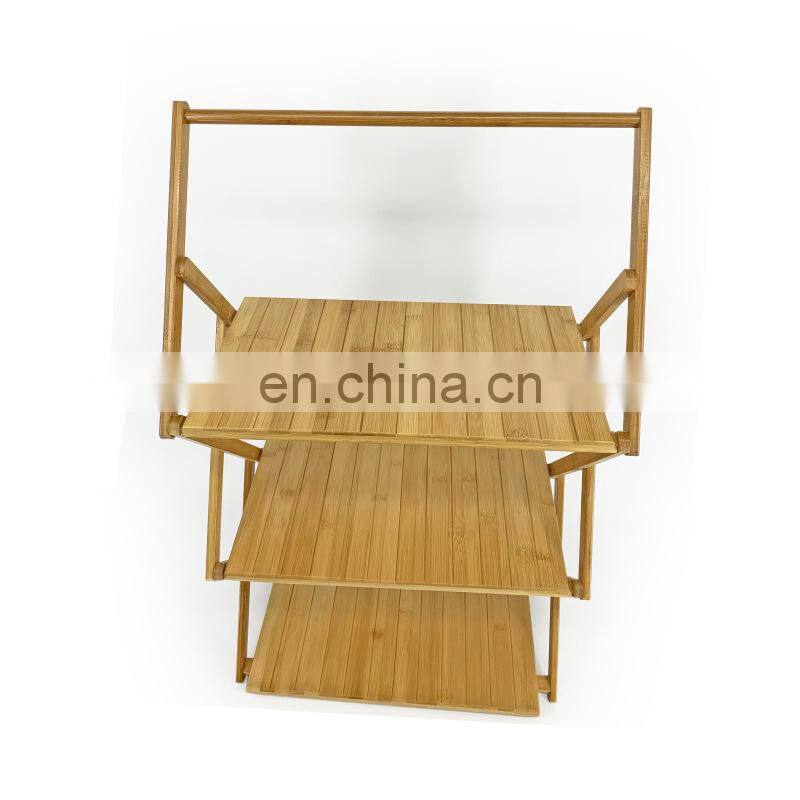 Outdoor Bamboo Wood Picnic Camping Rack Portable With Handle Japanese-style Folding Three-layer Storage Rack