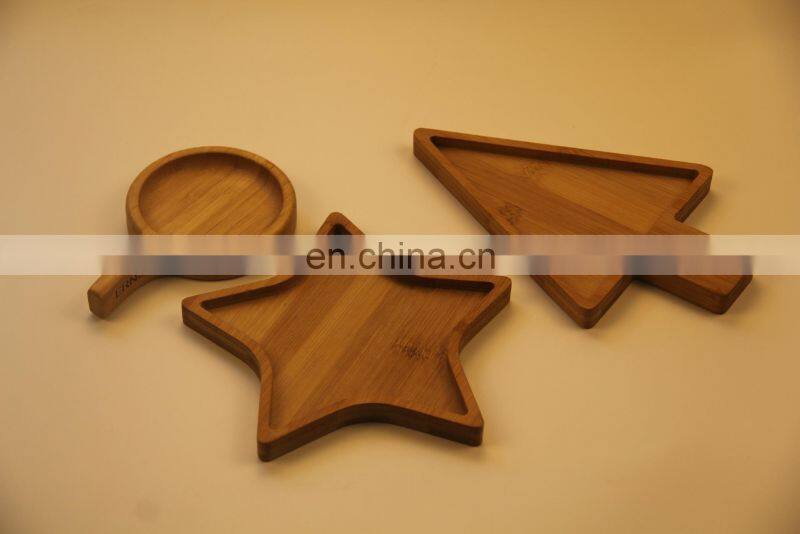 Bamboo Wooden Fiber Round Triangle Five-pointed Star Shape Design Restaurant Dinner Serving Tray Plates Set