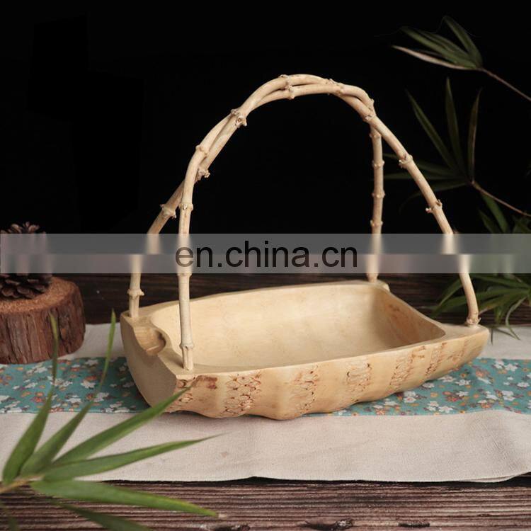 Handmade Wooden Multi-purpose Amazon Top Products Bamboo Root Fruit Snack Plate Space-saving Hand Basket for Wedding Decorations