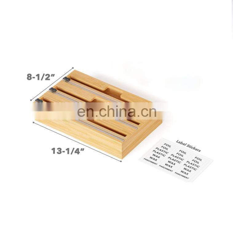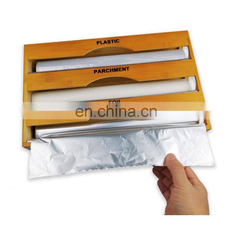 Home Kitchen & Tabletop Storage Organizer 3 In 1 Aluminum Foil And Plastic Bamboo Wrap Dispenser 3 Cling Film With Cutter