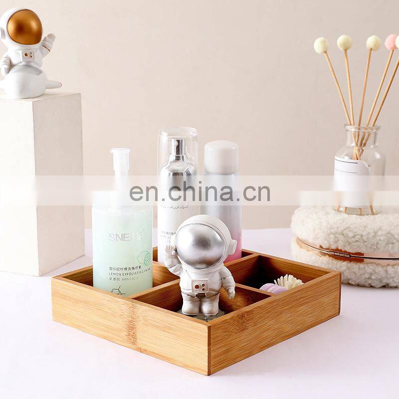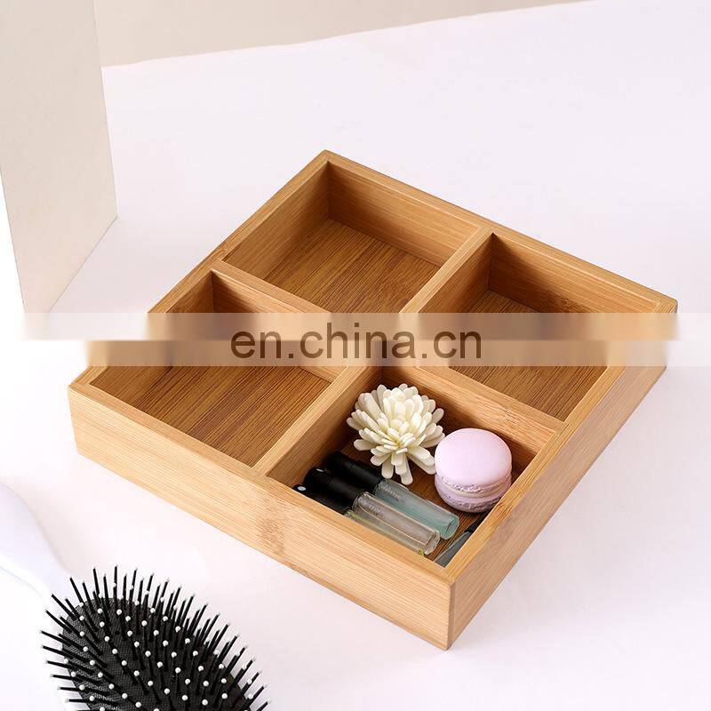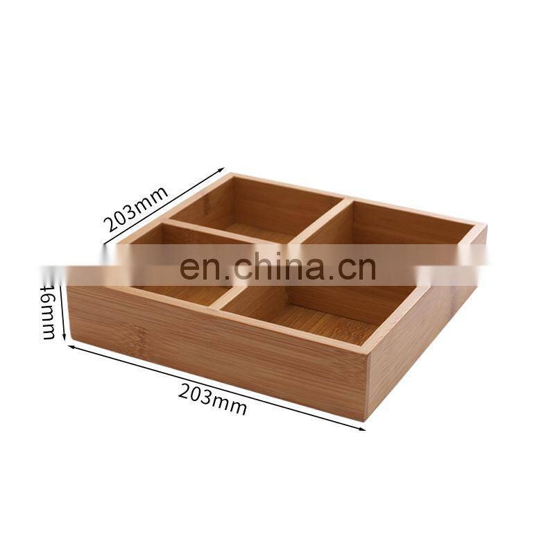Durable Bamboo 4 Slots Drawer Kitchen Tabletop Organizers Storage Box Wooden Jewelry Box for Ring/gift Storage Pantry Organizer