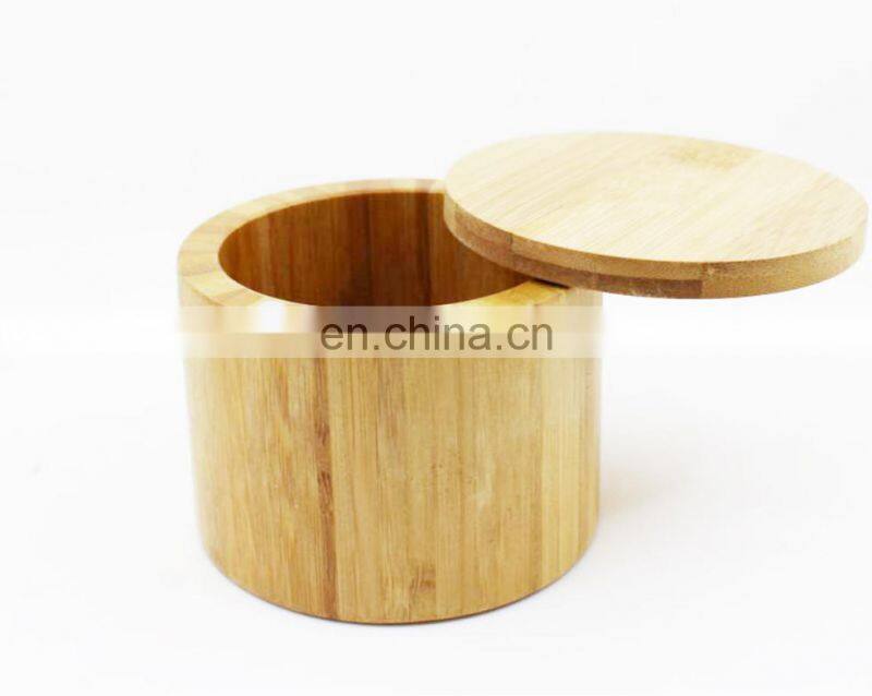 Home > Products > Kitchen accessories > Natural Small Round Bamboo Salt Cellar Herb & Spice Pepper Storage Box With Magnetic Swivel Lid Pantry Organizer