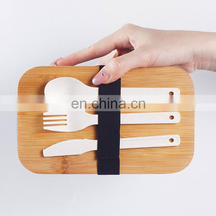 Wholesale biodegradable environmental protection buy school kid bento square box lunch bamboo lid with spoon cutlery set