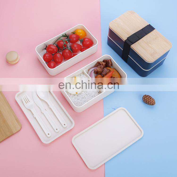 Biodegradable Compartment Microwaveable Plastic Bamboo Fiber Lid Bento Lunch Box Divider Set Accessories for Kids Adults