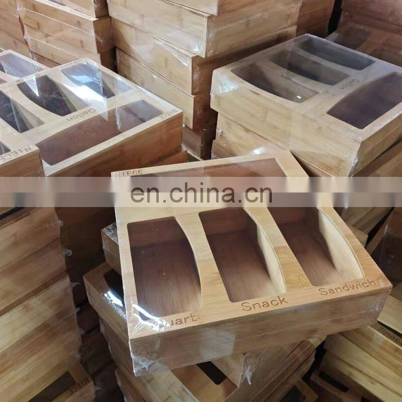 Compatible Plastic Baggie Food Home Storage Boxes Containers Ziplock Bags Bamboo Organizer And Dispenser Ffor Kitchen Drawer