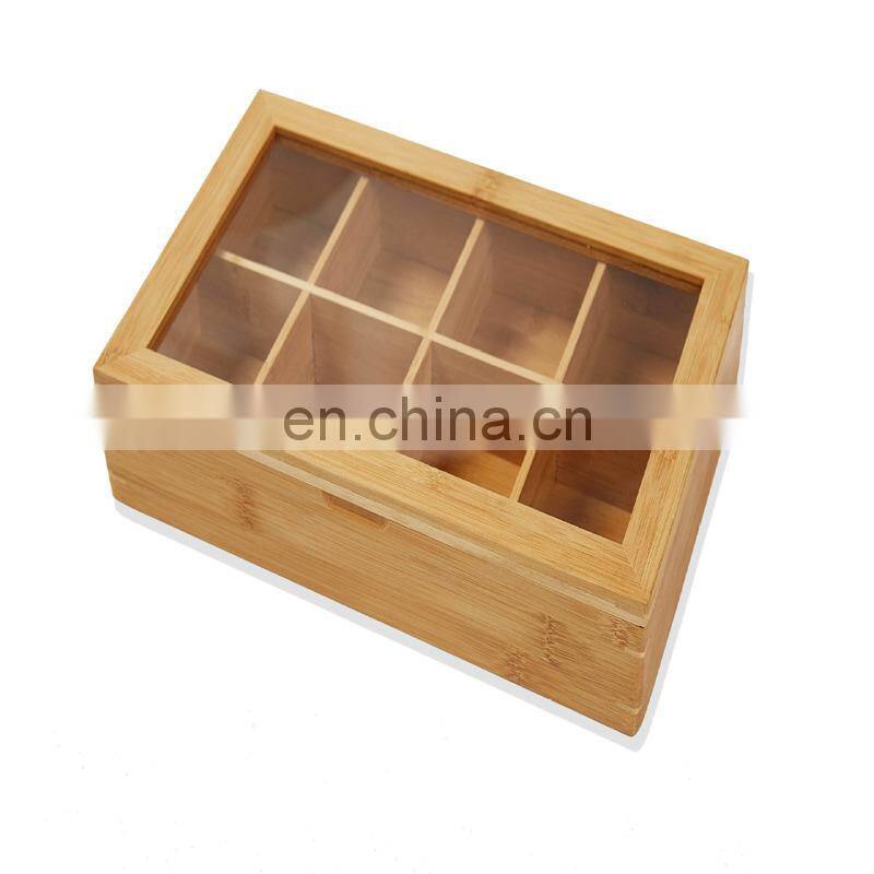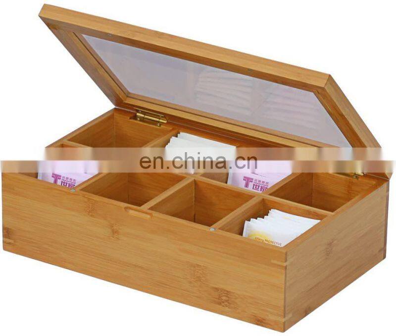Home > Products > Kitchen accessories > High Quality New Design Premium Bamboo Tea Box With Lid 8 Storage Sections Kitchen & Tabletop Storage Bins Pantry Organizer
