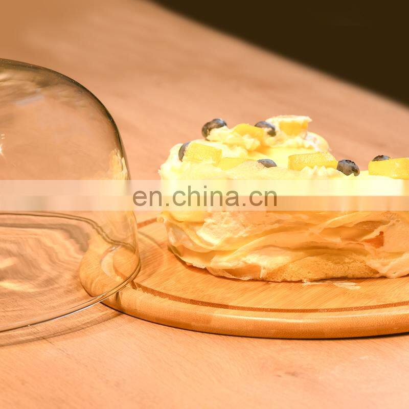 Flat Round Bamboo Cake Serving Plate Wood Dessert Stand Cheese Display With Dome Lid