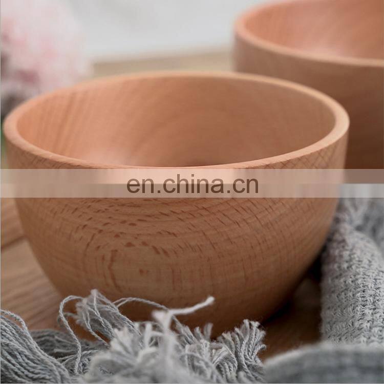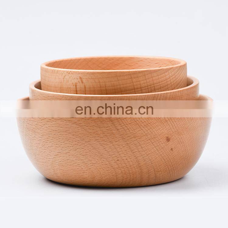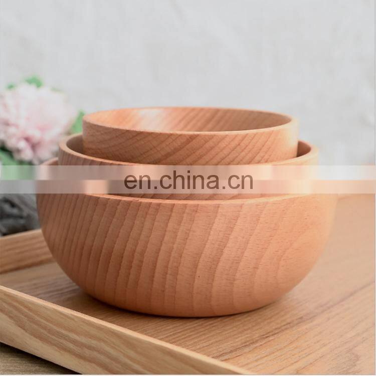 Wholesale Natural Round Wooden Serving Bowls Wood Soup Rice Snack Tableware Bamboo Salad Bowl