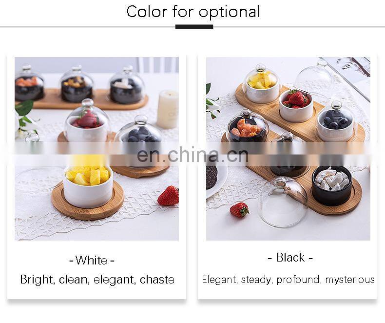 Dessert Server Tray With Cover Afternoon Tea Ceramic Baking Pudding Bowl Cupcake Pastry Tray