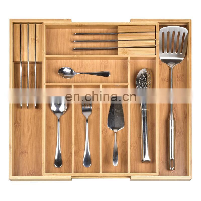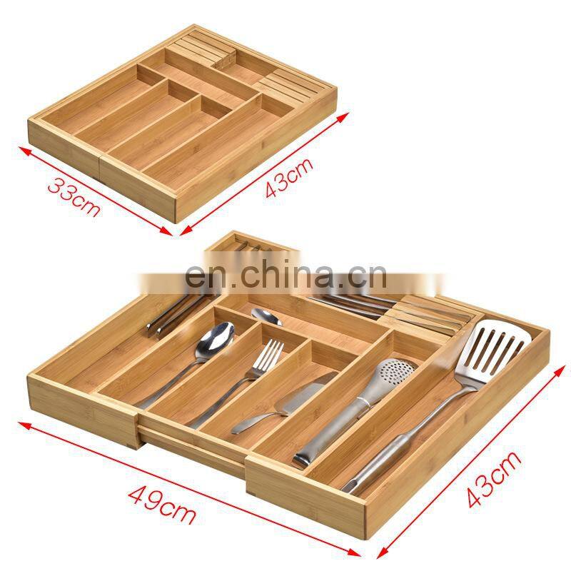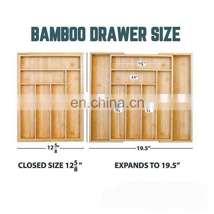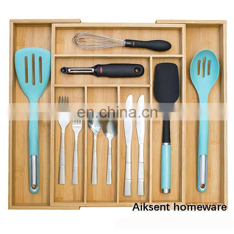 Home > Products > Kitchen accessories > 8 Expandable Compartments Bamboo Utensil Spoon Holder With Divider for Kitchen Drawer Silverware Cutlery Tray