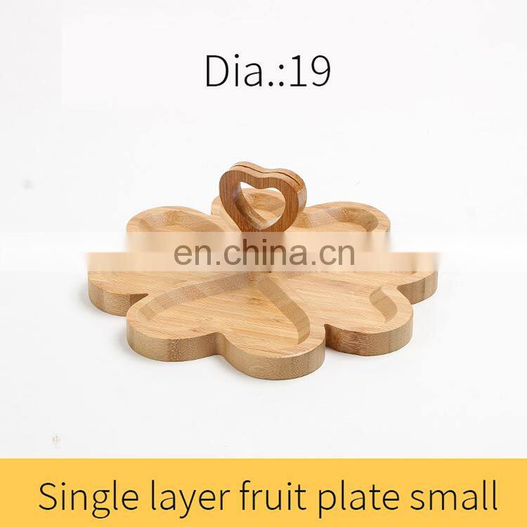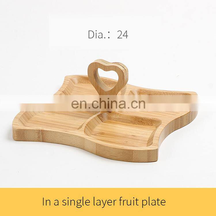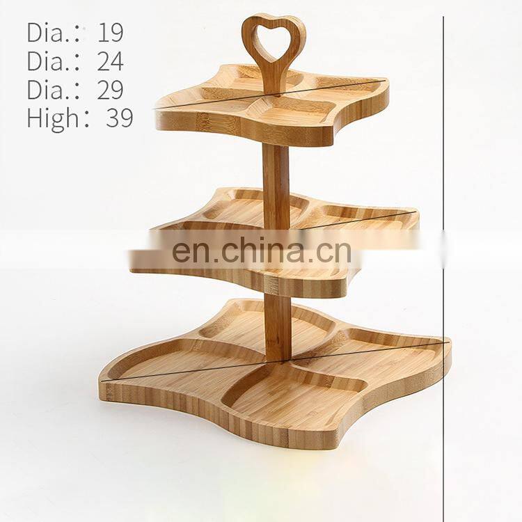 Hot Sale 3 Tier Round Bamboo Cake Display Stand With Handle Fruit Snack Cupcake Serving Platter
