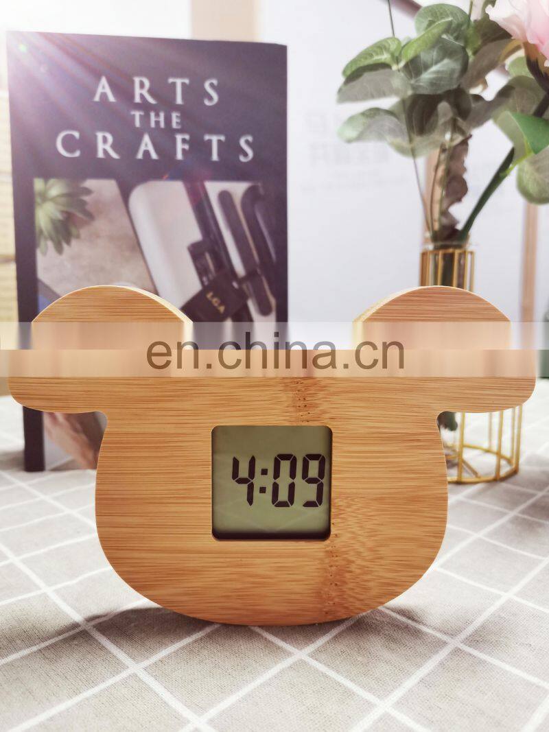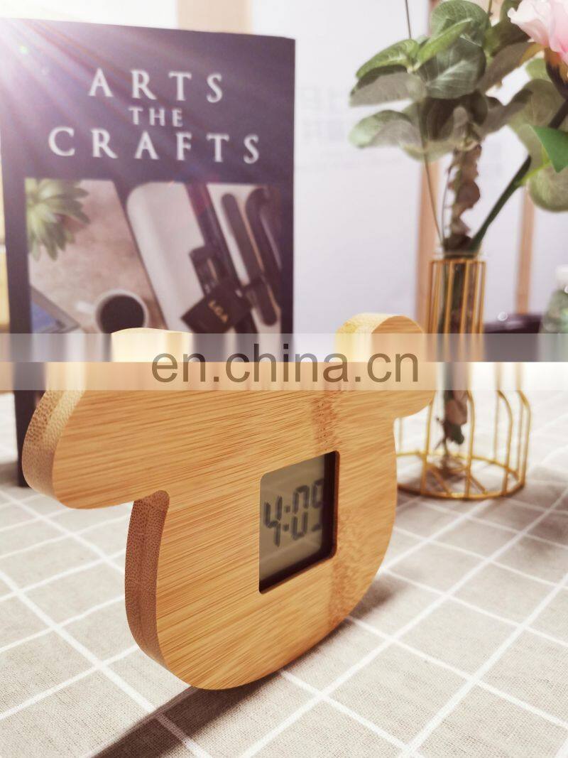 Wholesale Design Unique Animal Dog Shaped Children Desktop Bamboo Digital Alarm Clock