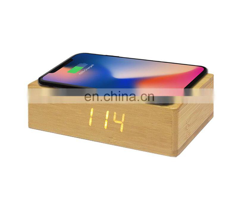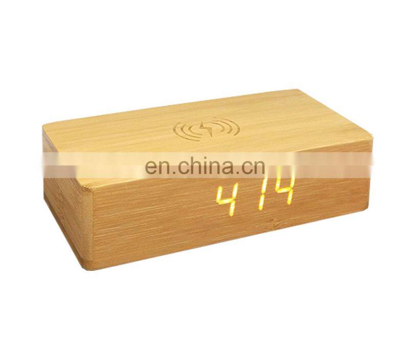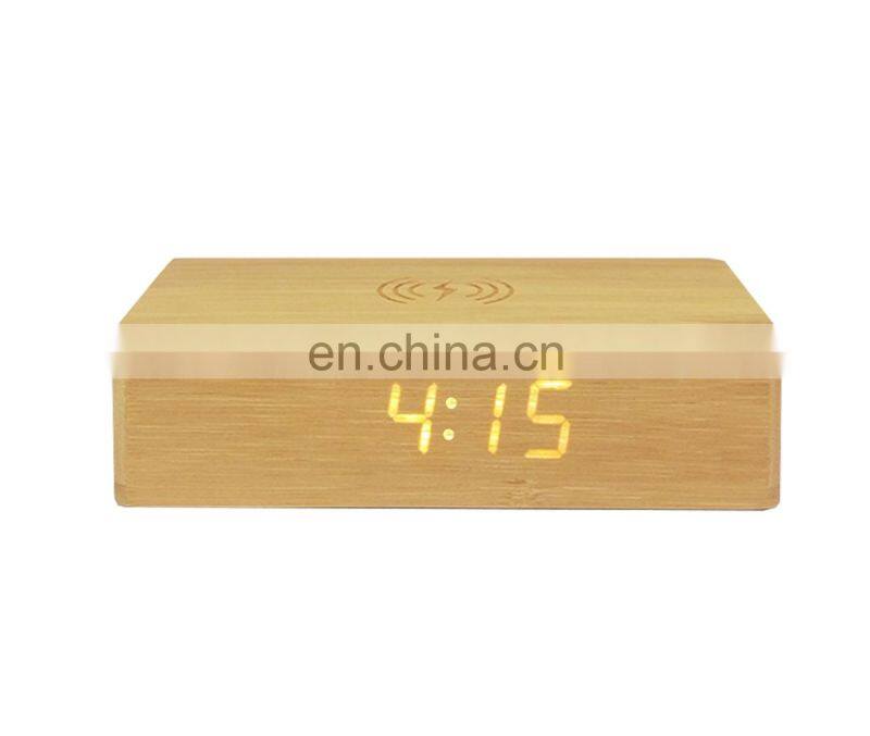 Home > Products > Household supplies > Modern Home Living Room Bedroom Natural Eco Friendly Voice Control Wooden LED Digital Alarm Clock With Recharge