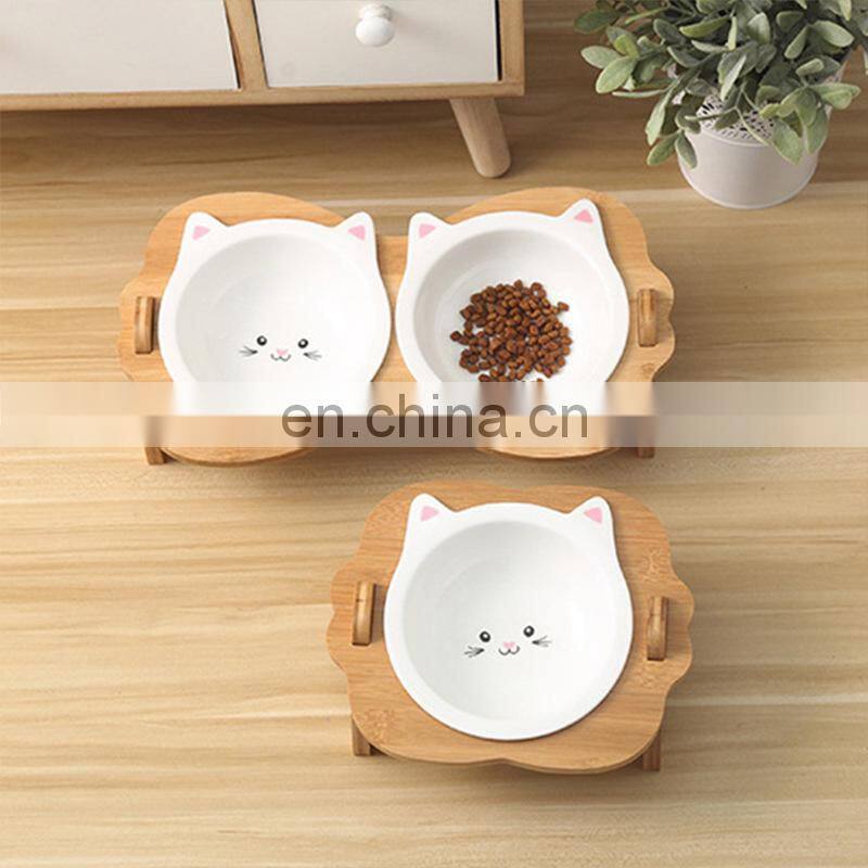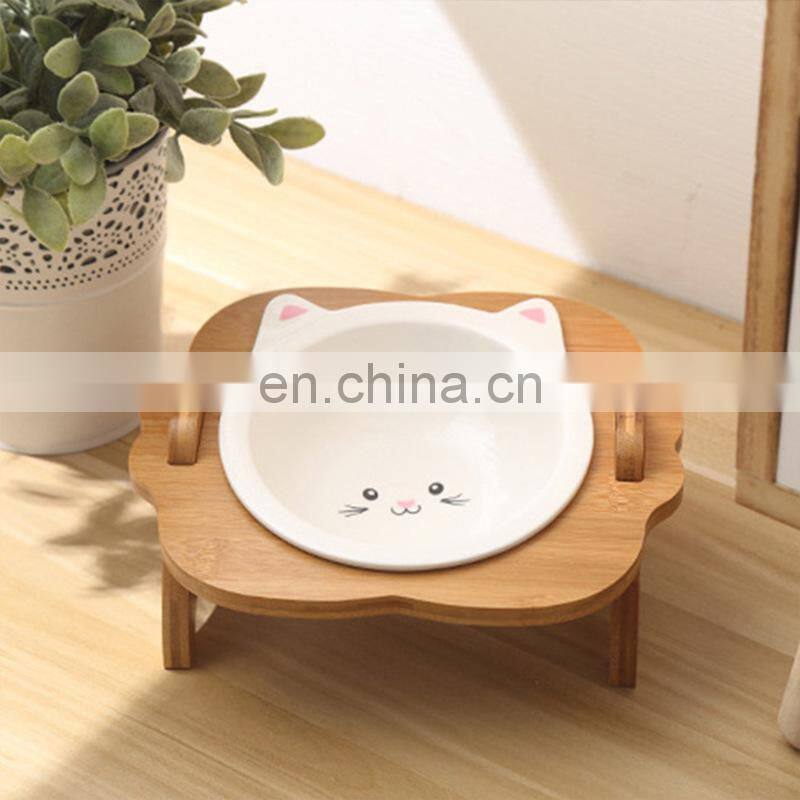 Pet Tilted Bowl Ceramic Cat Head for Dogs Food Print-dog-bowl Various Specifications Bamboo Stand With Storage Drawers