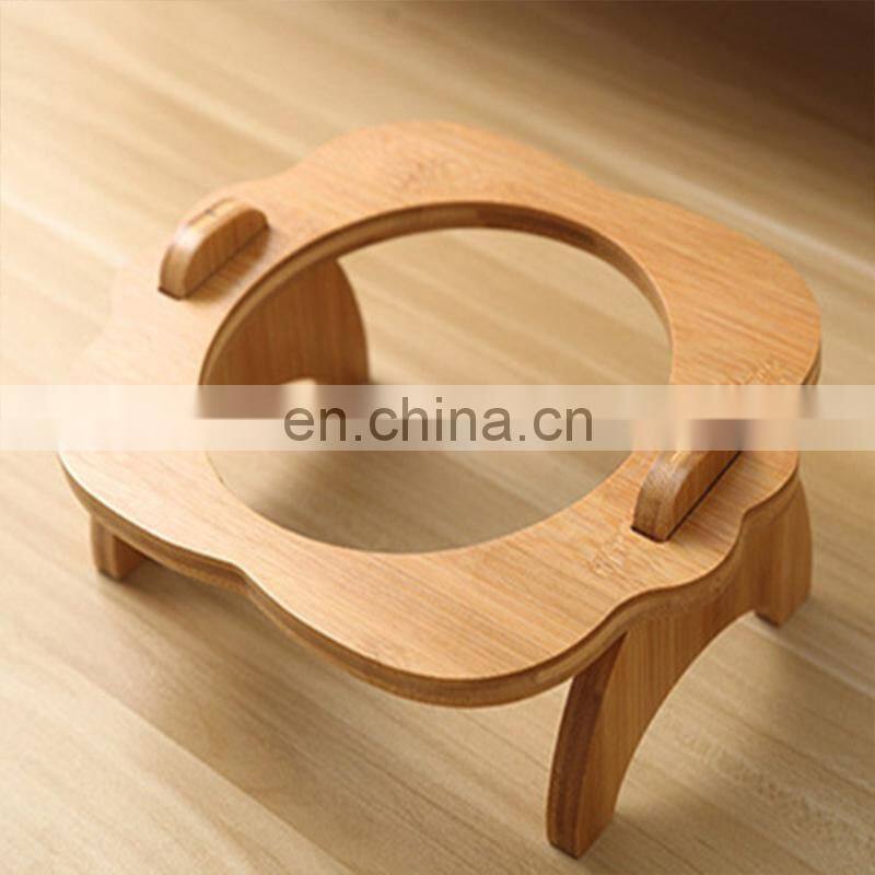 Non-slip Feeding Cat Pet Dog Stand Natural Bamboo Rack Ceramic Bowls Feeder for Pets