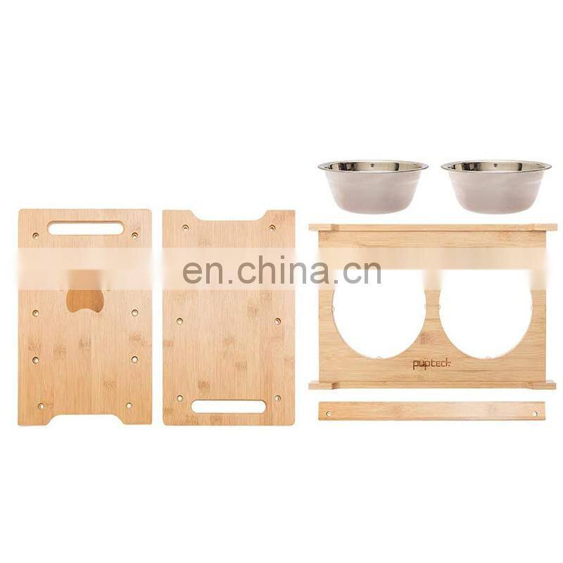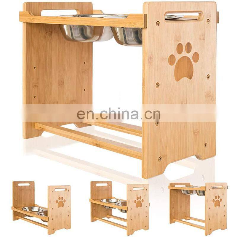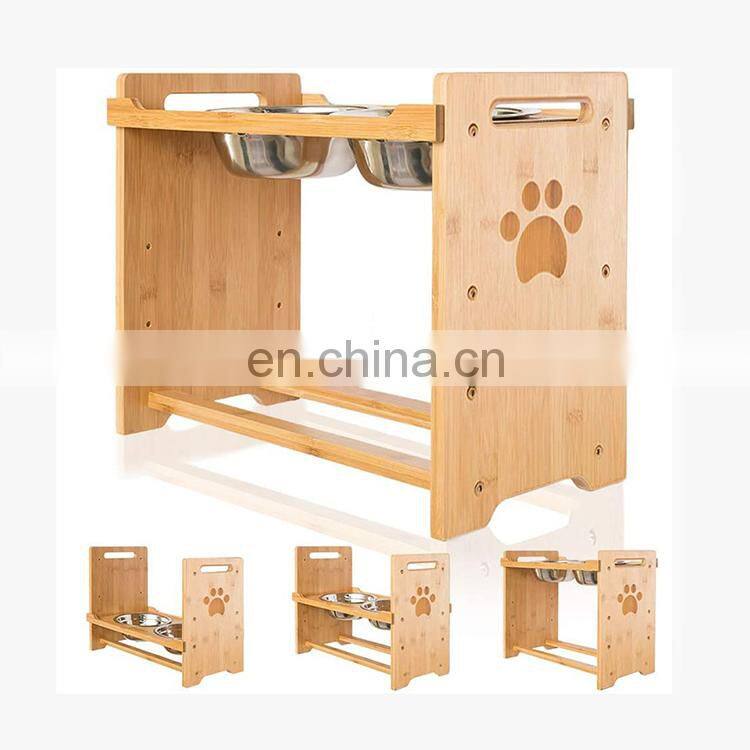 Luxury Adjustable Pet Feeding Bowl Stand Cat Dog Water Food Bowl Wooden Pet Elevated Feeder