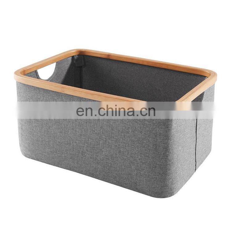 Collapsible Rectangular Oxford Cloth Clothes Storage Toy Storage Box Laundry Basket With Bamboo Handle