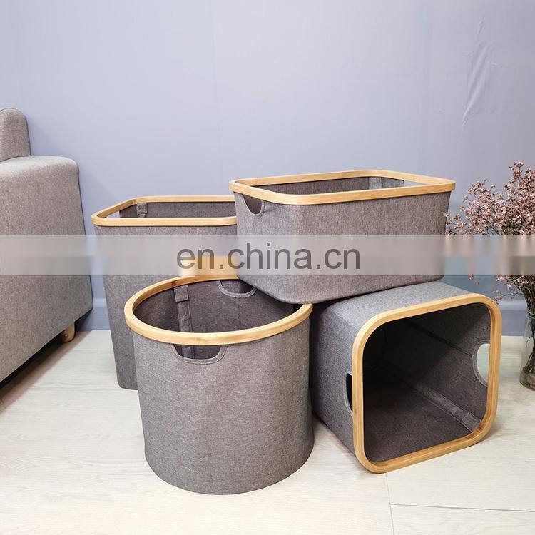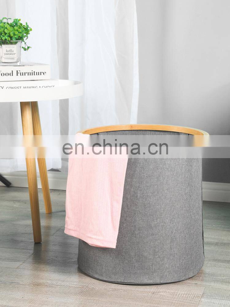 Portable Fabric Laundry Storage Basket Round Foldable Large Bamboo Dirty Clothes Organizer Baskets