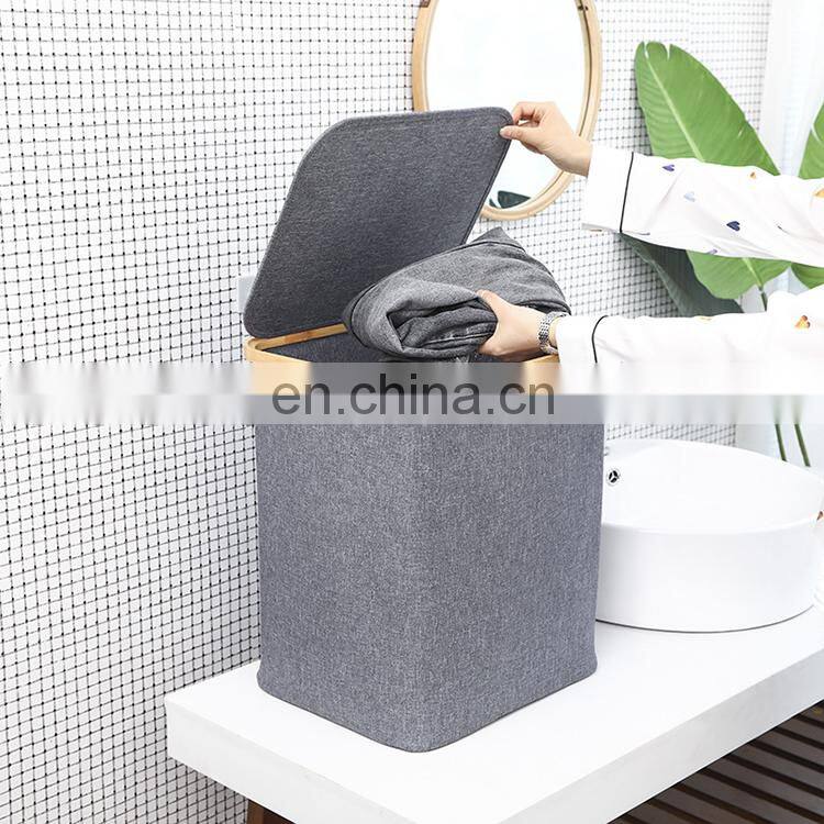 Home > Products > Household supplies > Bamboo Foldable Dirty Clothes Storage Organizer Laundry Hamper Basket Bathroom Household Canvas Basket