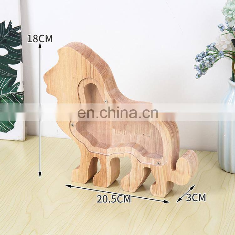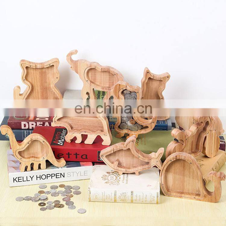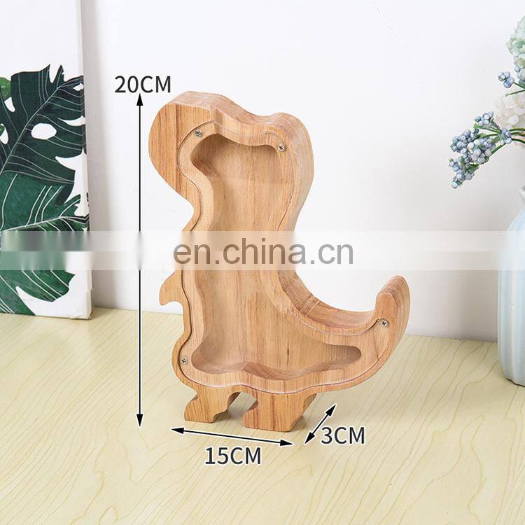 Euro Cartoon Blank Money Gift Cash Coin Box Girls Leopard Dinosaur Saving Clear Safe Piggy Bank Wooden-money-box