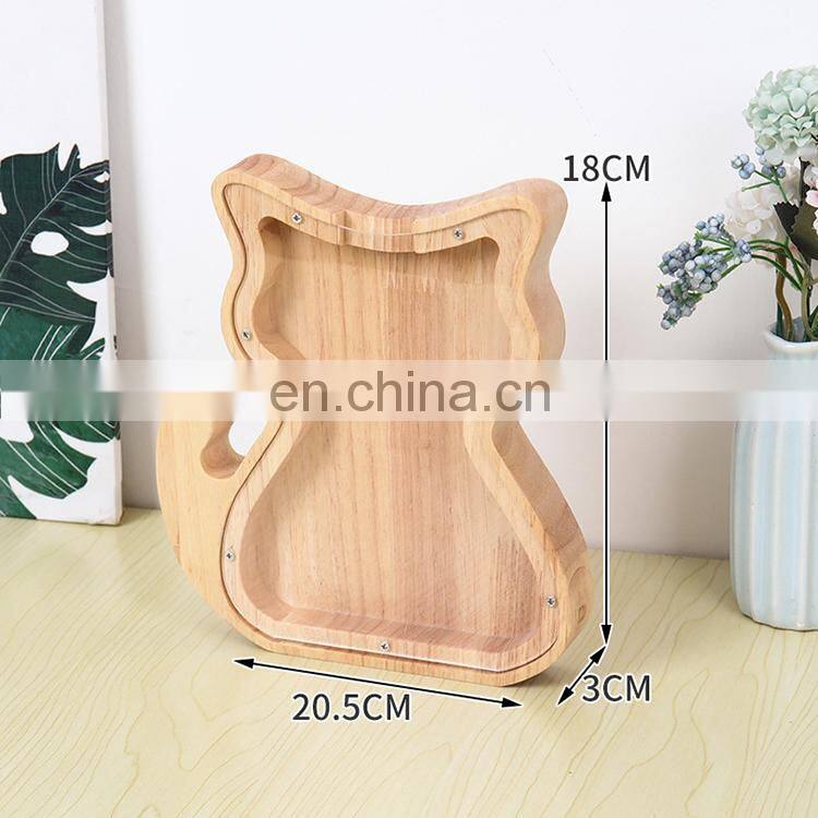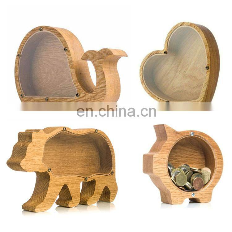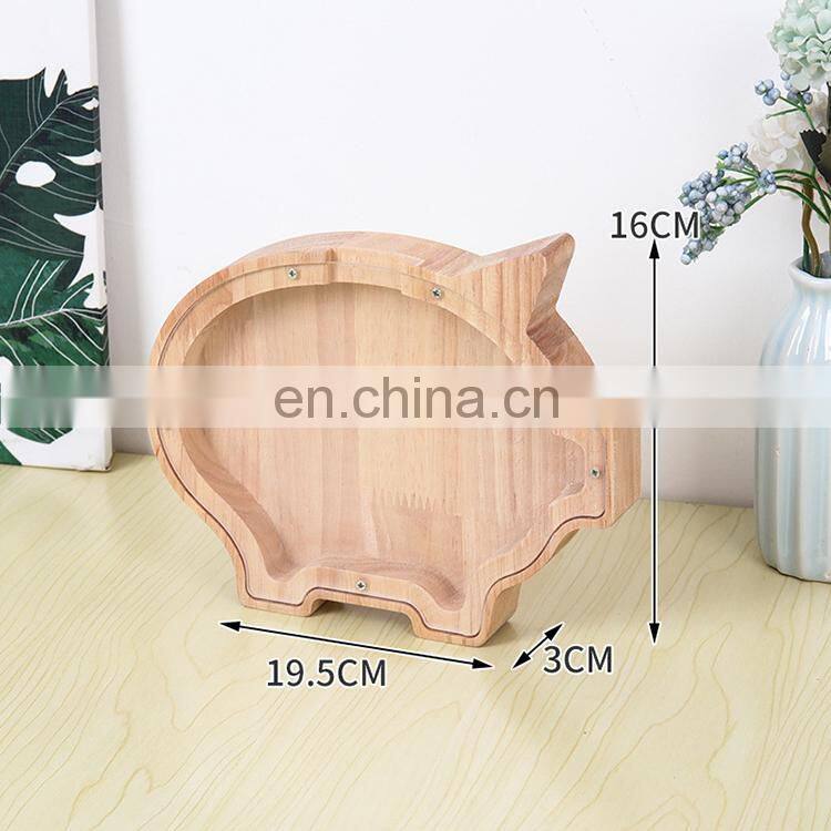 Custom wooden cartoon transparent piggy coin bank pig kids money saving storage cash collecting box safe surprise gift