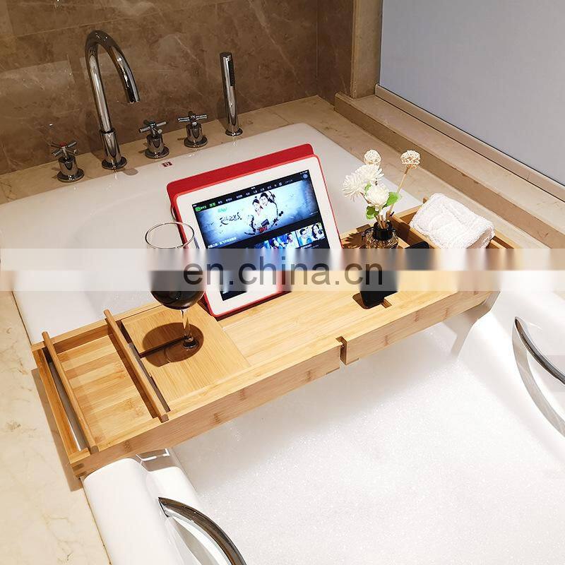 Bamboo Bath Caddy Bathtub Tray Wood Extendable Bridge With Holder for Candle Wine Glass Book Tablet Ipad Phone