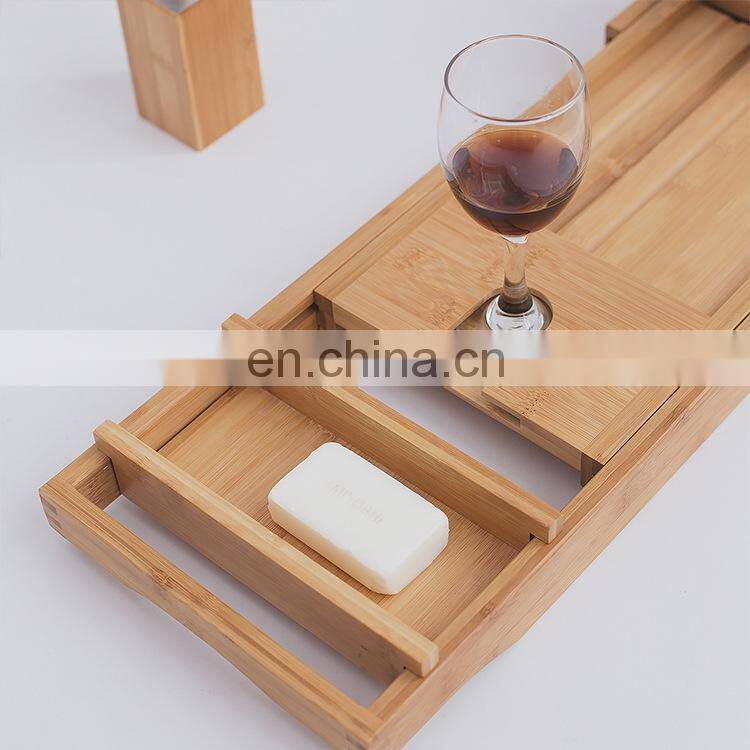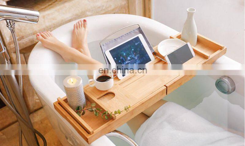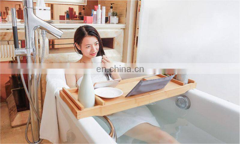 2020 New Natural Bamboo Bathtub Rack Retractable Nordic Light Luxury Bathtub Show Caddy Bamboo Wood Bathtub Caddy