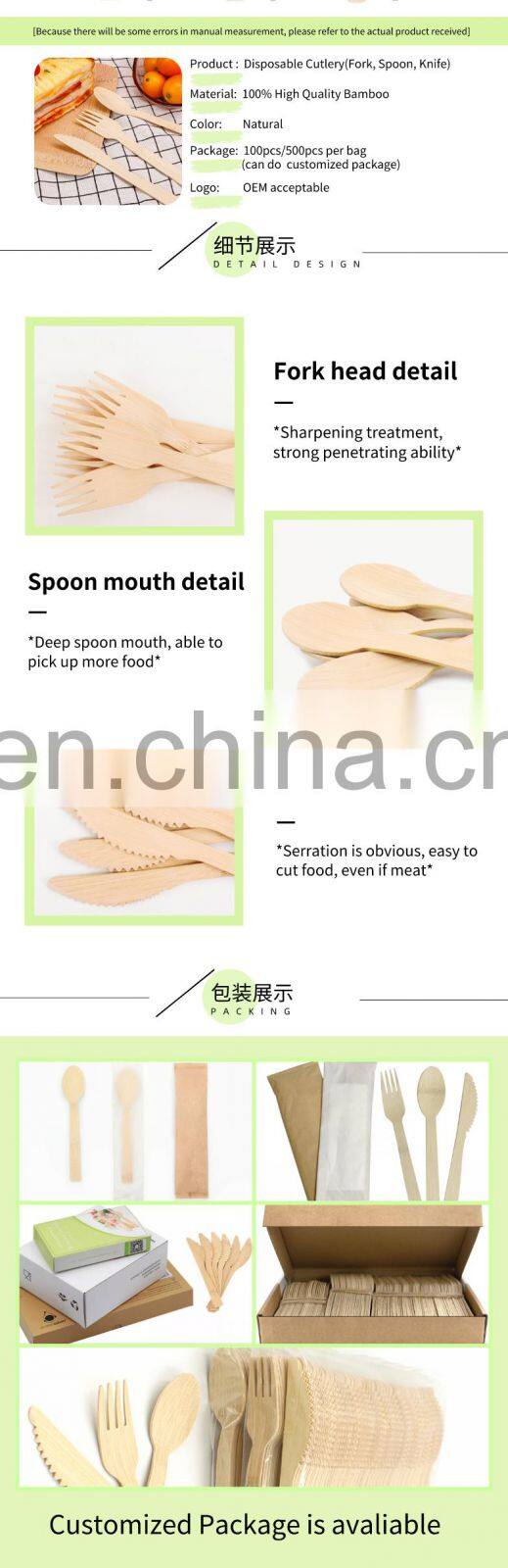 Disposable Bamboo Fork Spoon Knife Dinnerware Set High Quality Bamboo Disposable Cutlery Set