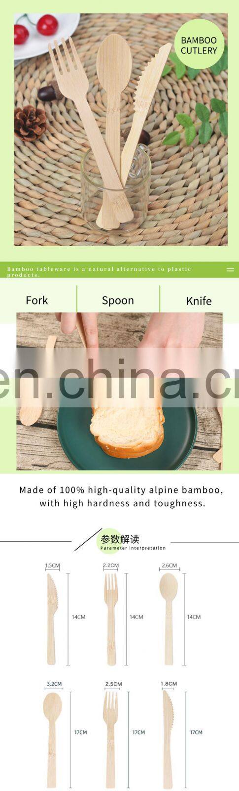 Factory Wholesale Disposable Bamboo Spoon Knife Forks for Party One-time Bamboo Cutlery Set