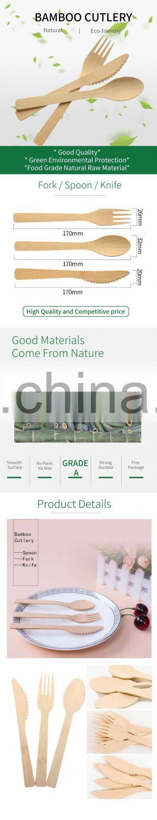 Eco-friendly 170mm Disposable Bamboo Cutlery Biodegradable Fork Spoon Knife