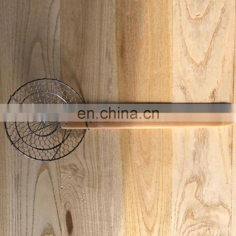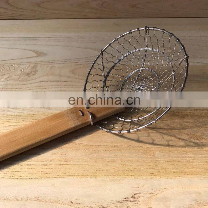 Natural Bamboo Filter Coarse Skimmer Kitchen Stainless Steel Spider Filter With Natural Bamboo Handle Deep-fried Cooked Pasta