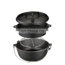 Cast Iron Picnic Three-Legged Dutch Outrigger Cover Flat-Bottomed Camping Hanging Open Fire Stew Pot