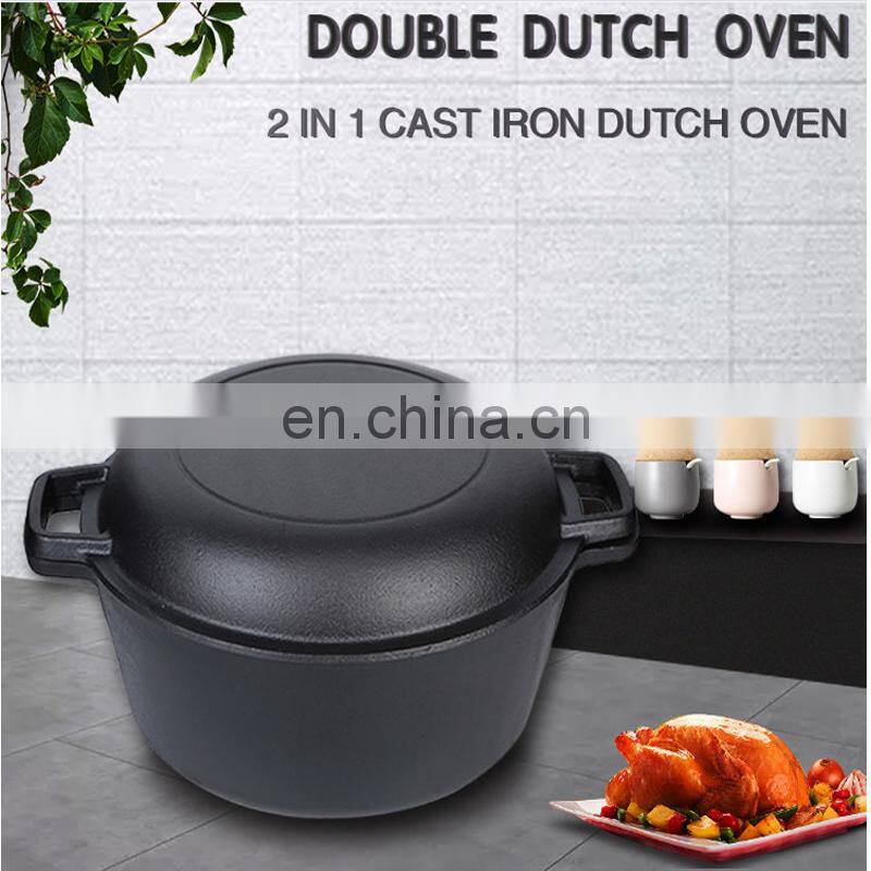 - Enamel Cast Iron Double Dutch Oven With Fry Pan Lid