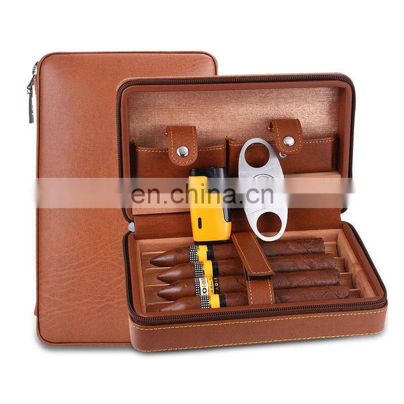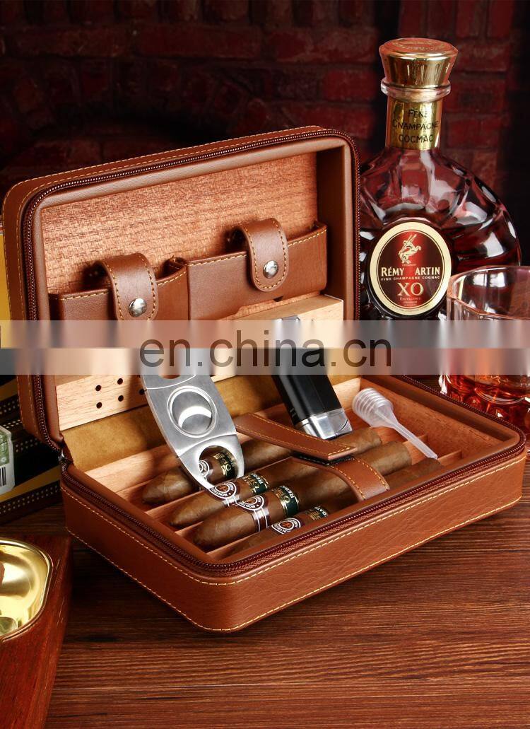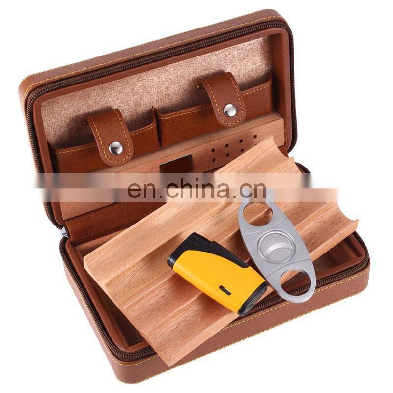 Travel portable cigar boxes wholesale cedar leather cigar humidor case box